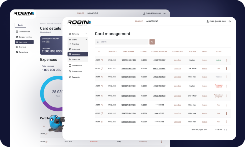 Robin.aero is changing the game. Designed specifically for the aviation industry, our platform unifies everything from payments and budgeting to banking and expense tracking — all in one place. Think of it as your command center for financial clarity, operational agility, and total peace of mind.